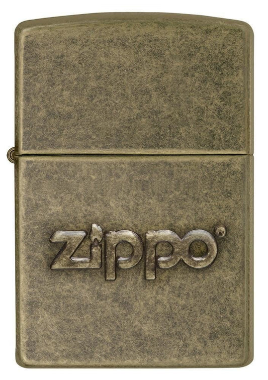 Zippo Stamped Logo Classic Antique Lighter, Brass Finish #28994