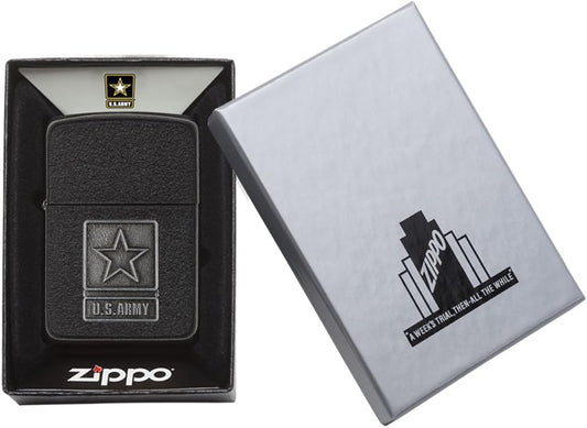 Zippo US Army Pewter Emblem, Black Crackle Finish Lighter #28583