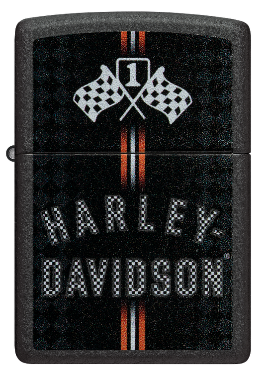 Zippo Harley Davidson Flags Design, Black Crackle Lighter #48558