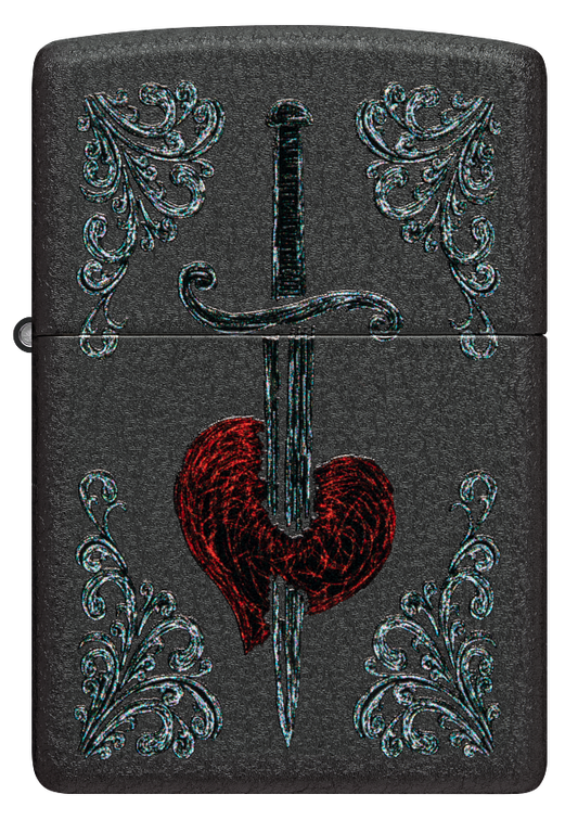 Zippo Heart and Dagger Design, Black Crackle Finish Lighter #48617