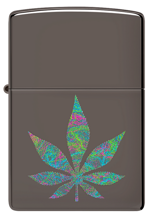 Zippo Cannabis Leaf Design, Black Ice Lighter #48578