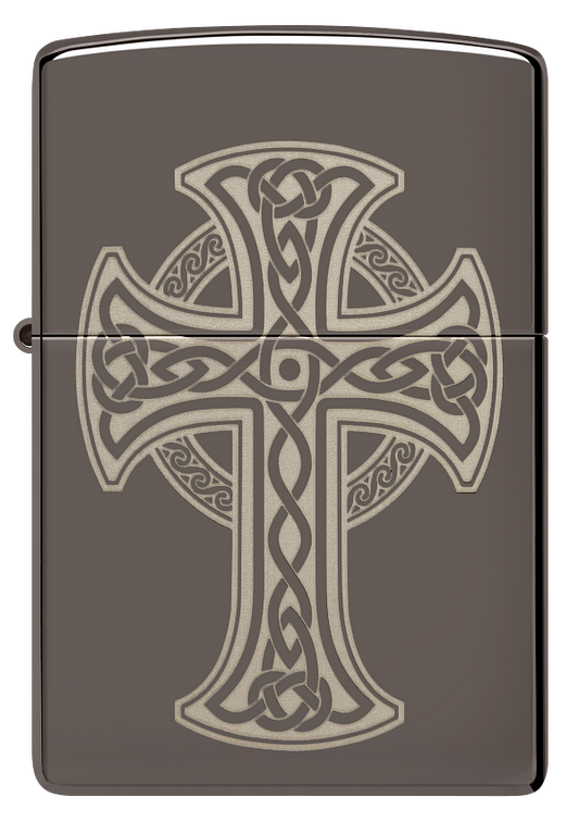 Zippo Spiritual Cross Laser Engrave Design, Black Ice Lighter #48614