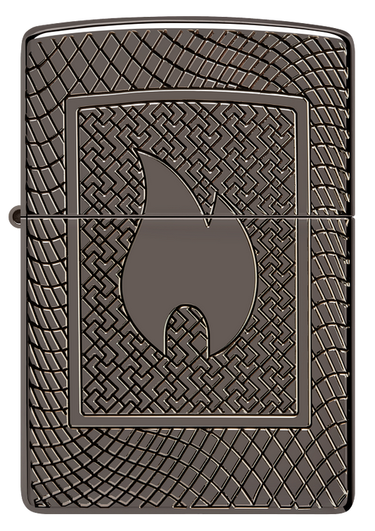 Zippo Flame Logo Deep Carve Engrave, Black Ice Armor Lighter #48569