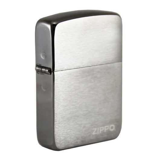 Zippo 1941 Replica Lighter, w/ Logo, Black Ice Finish, Windproof #24485