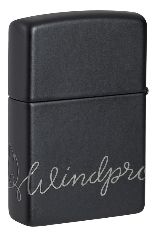 Zippo Windproof Script Laser Engraved 360 Design, Black Matte #48979