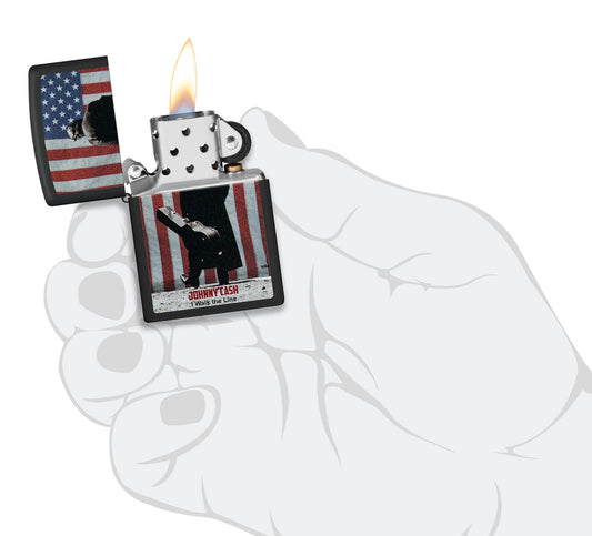 Zippo Johnny Cash I Walk The Line USA Design, Black Matte Lighter #46166