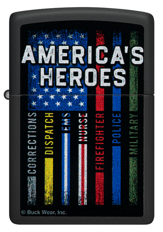 Zippo Buck Wear American Heroes USA Design, Black Matte Lighter #48634
