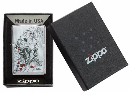 Zippo Rick Rietveld Skeleton Rose Bush, Brushed Chrome Pocket Lighter NEW #49144