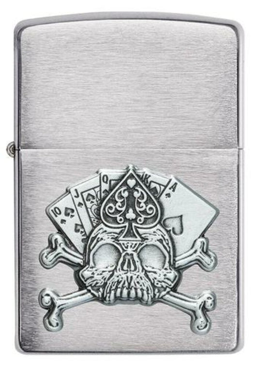 Zippo Card Skull Casino Gambling 3D Emblem, Brushed Chrome Finish Lighter #49293
