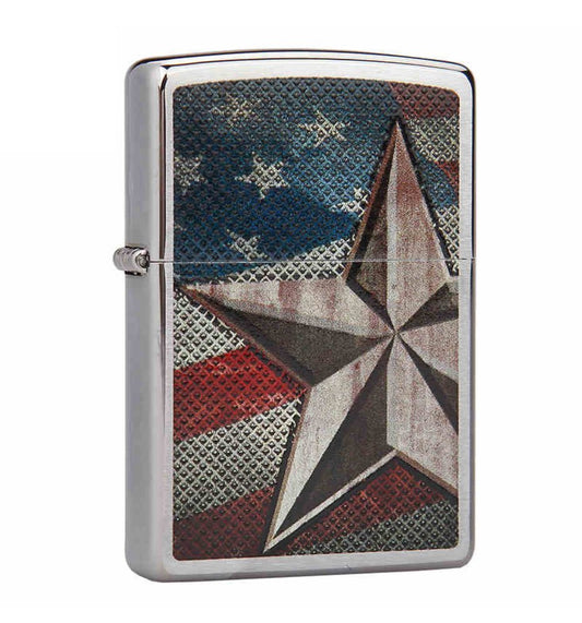 Zippo Retro Star and Flag Lighter, Brushed Chrome, Windproof #28653