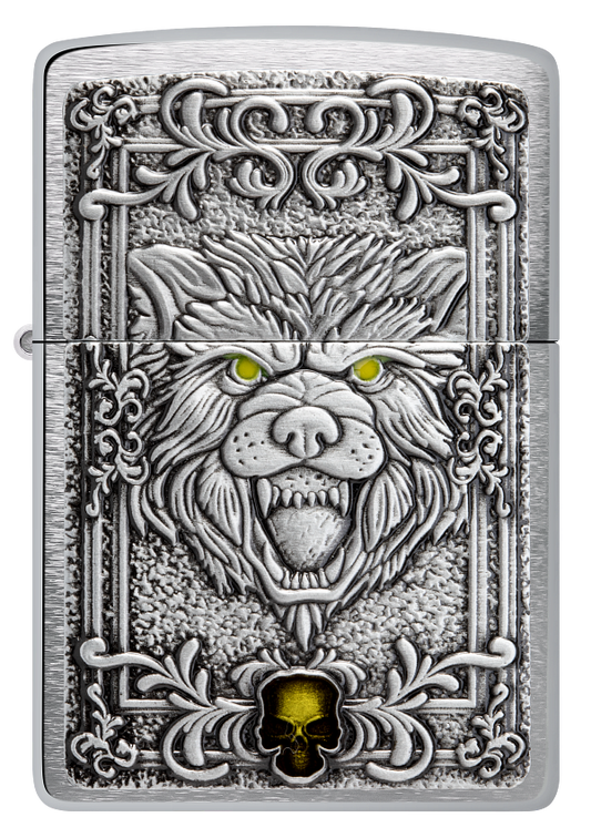 Zippo Wolf Emblem Design, Brushed Chrome Lighter #48690