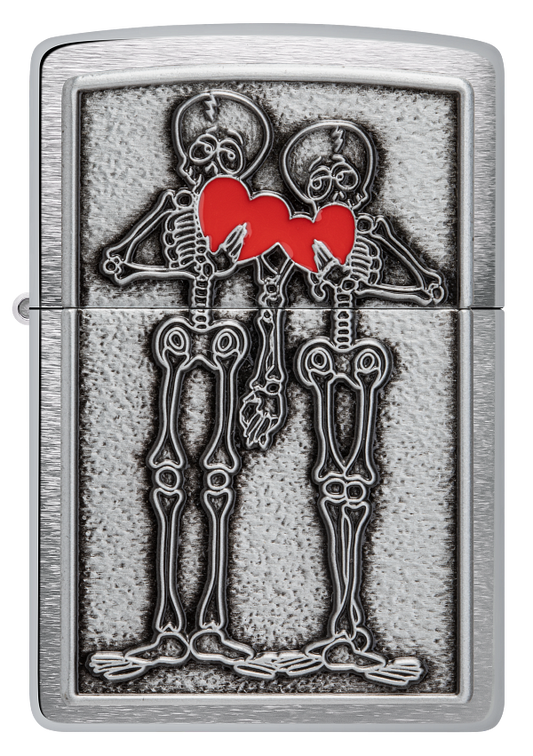 Zippo Romantic Skeleton Emblem Design, Brushed Chrome Lighter #48688