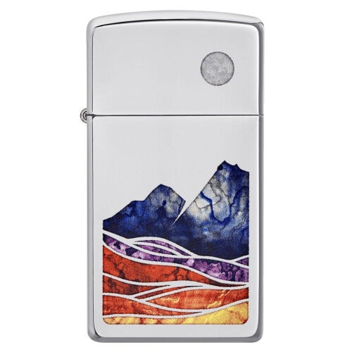 Zippo Slim Landscape Design, High Polish Chrome Finish, Windproof Lighter #49412