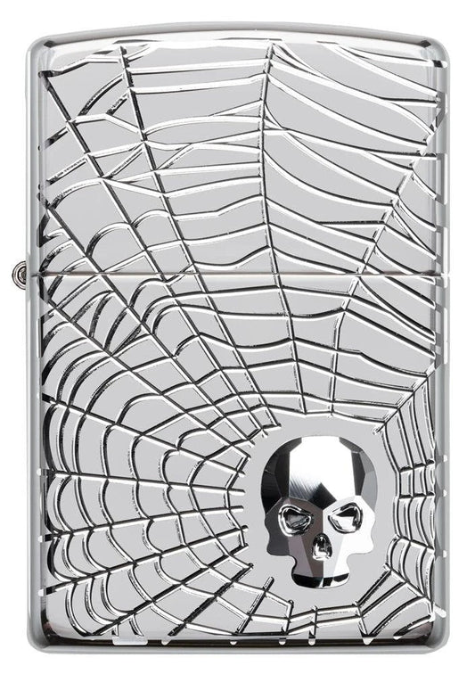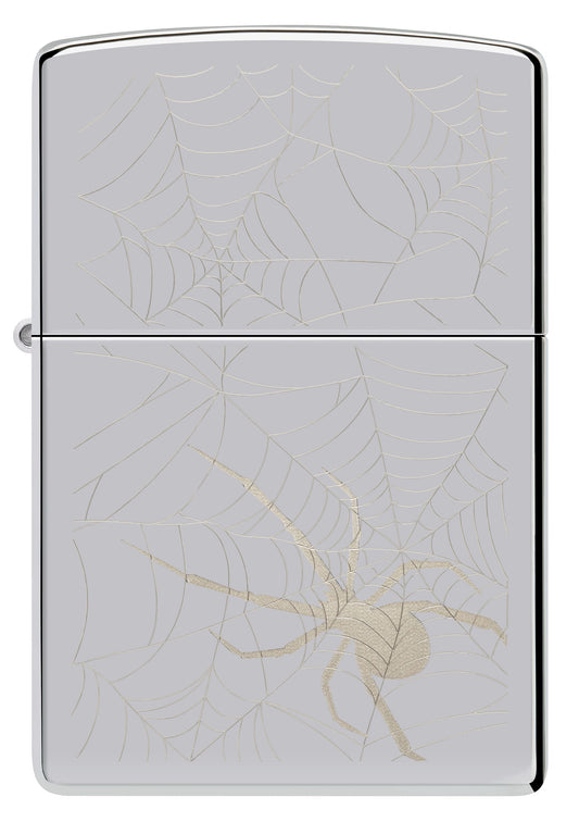 Zippo Horror Spider Web, Laser Engrave High Polish Chrome Lighter #48767