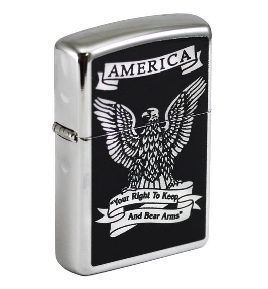 Zippo 28290, Eagle Lighter, Right to Bear Arms, High Polish Chrome #28290
