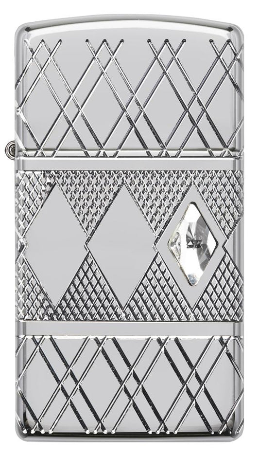 Zippo Slim Armor Diamond Pattern Design, High Polish Chrome Lighter #49052