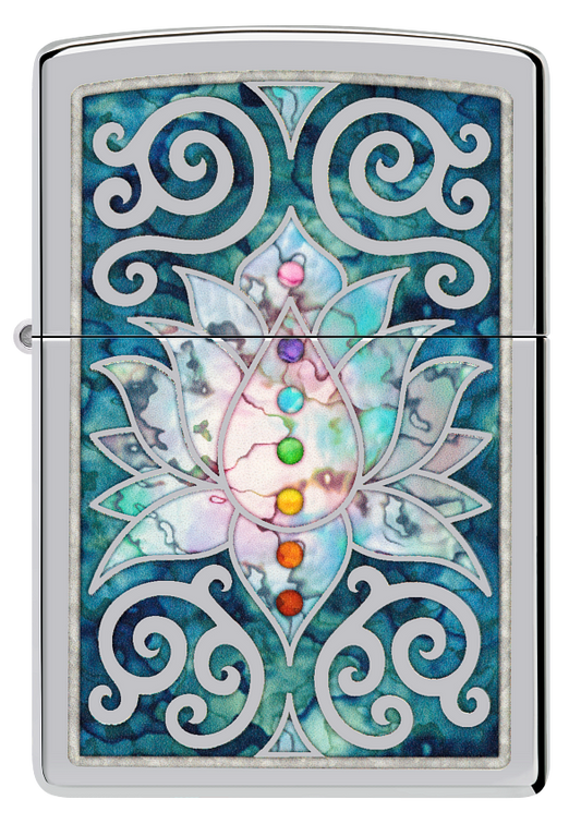 Zippo Spiritual Meditation Design, High Polish Chrome Lighter #48592