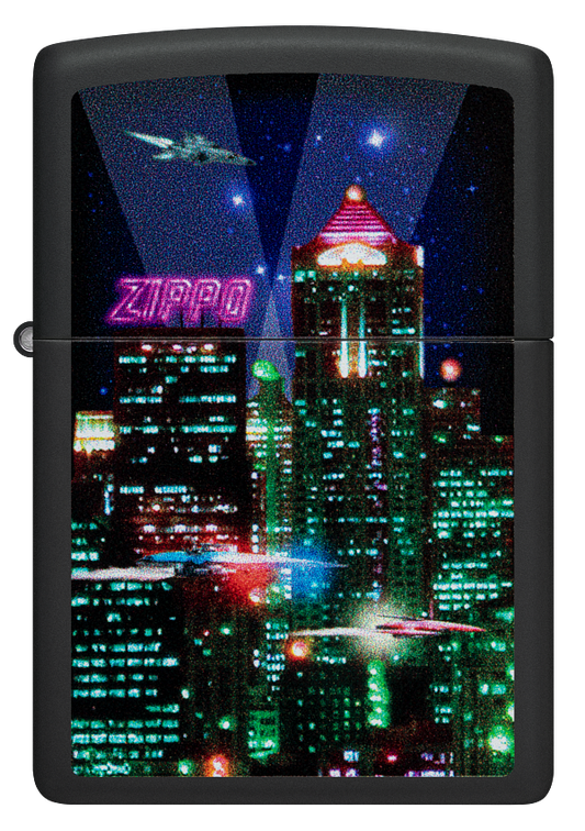 Zippo Cyberpunk City at Night Color Image Design, Black Matte Lighter #48506