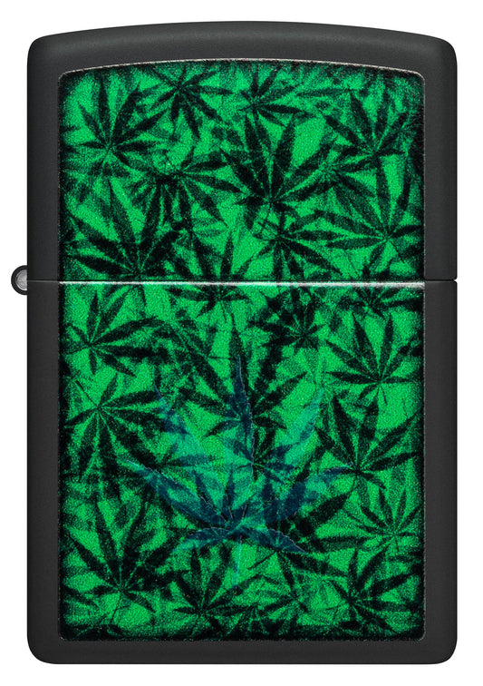 Zippo Cannabis Leaves Black Light Design, Black Matte Lighter #48736