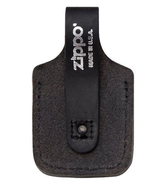 Zippo Black Leather Pouch w/Belt Loop & Thumb Notch For Windproof Lighter #LPTBK