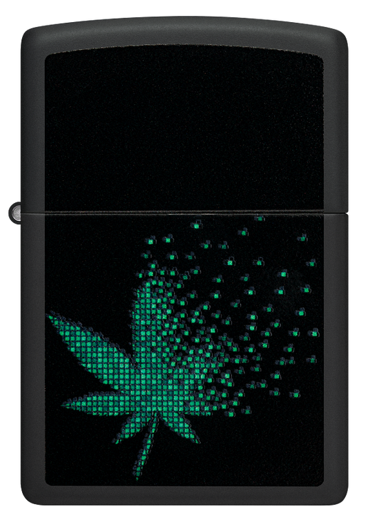 Zippo Cannabis Leaf Fading Away Black Light Design, Black Matte Lighter #48677