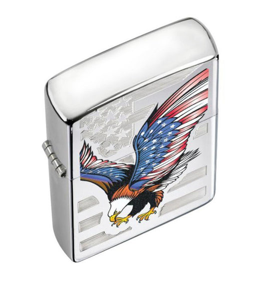 Zippo American Flag Eagle, High Polish Chrome, USA Genuine Lighter #28449