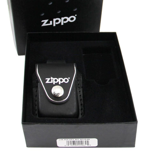 Zippo Satin Chrome Lighter & Black Clip-On Leather Pouch Gift Box Set