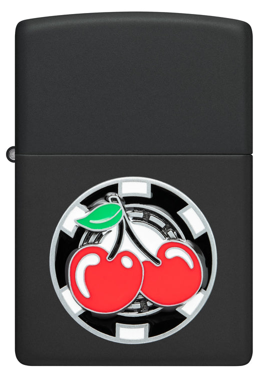 Zippo Casino Cherry Emblem Attached, Black Matte Lighter #48905