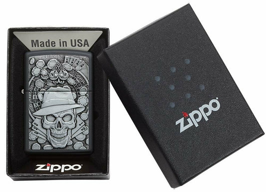 Zippo Gambling Skull Casino Roulette Emblem, Black Matte Lighter #49183