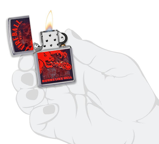 Zippo Fireball Whisky Taste Like Heaven Burns Like Hell, Street Chrome Lighter #49308