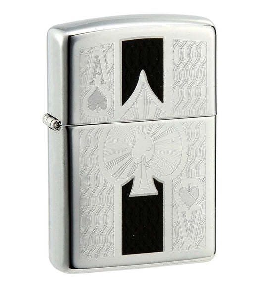 Zippo Ace Card Emblem, Brushed Chrome Finish Windproof Lighter #49637