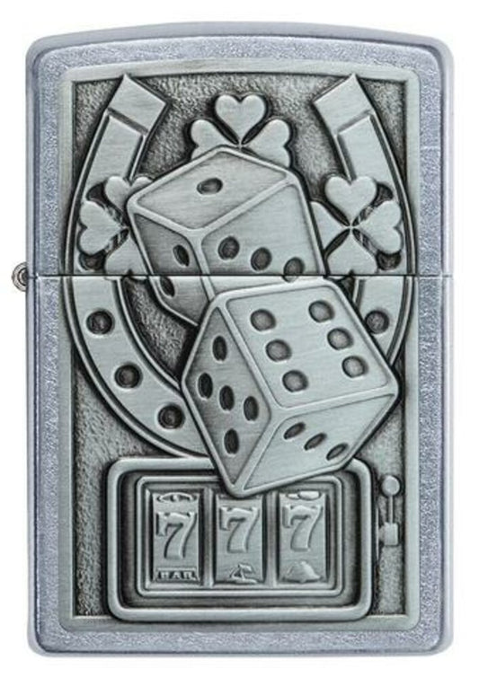 Zippo Lucky 7 Casino Gambling 3D Emblem, Street Chrome Windproof Lighter #49294