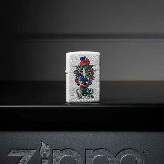 Zippo Floral Skeleton, Mercury Glass Finish, Genuine Windproof Lighter #49252
