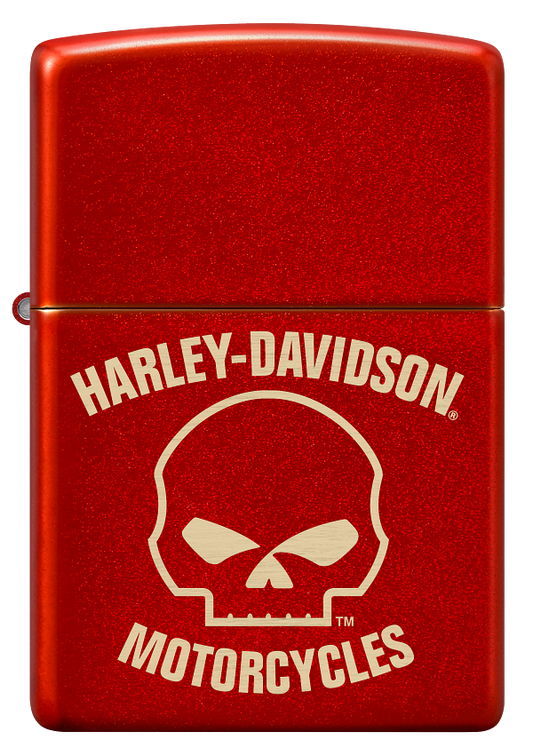Zippo Harley Davidson Skull Laser Engrave Design, Metallic Red Lighter #48603