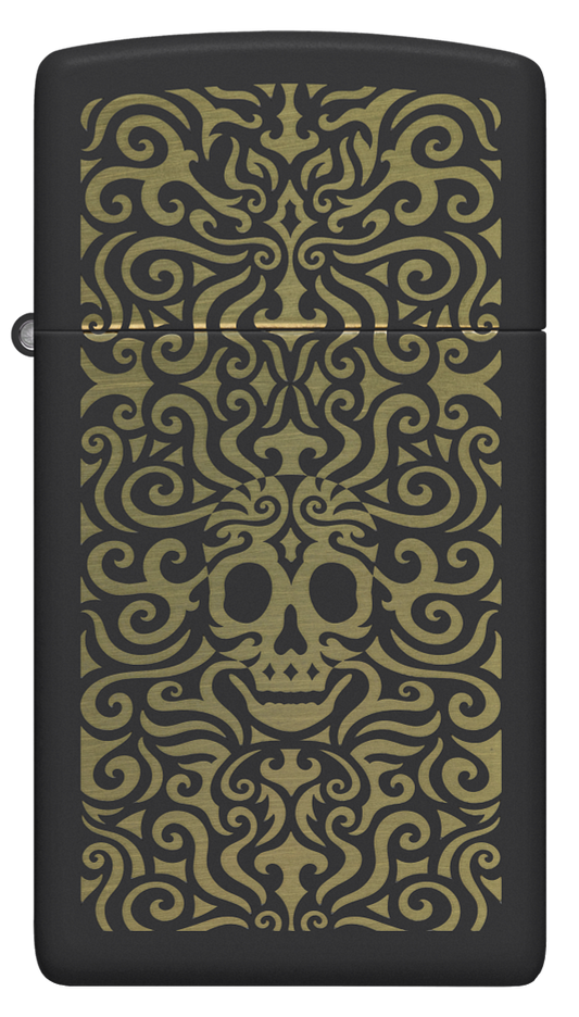 Zippo Slim Medusa Skull Design, Black Matte Laser Engraved Lighter #48564
