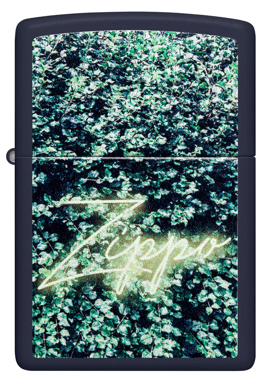 Zippo Neon Sign Greenery Wall, Navy Matte Lighter #48721