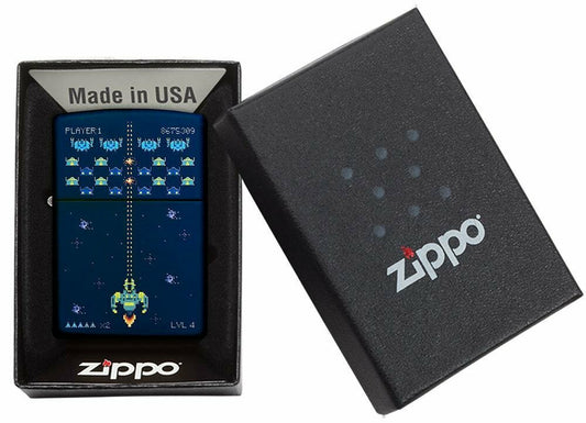 Zippo Space Invaders Pixel Retro Game, Navy Blue Matte Windproof Lighter #49114