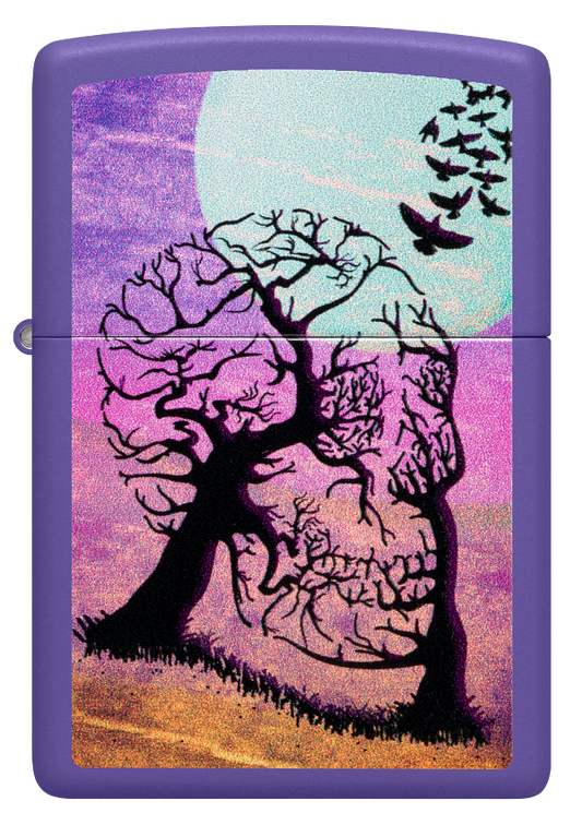 Zippo Skull in Tree Illusion, Purple Matte Lighter #48638