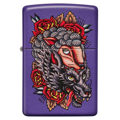 Zippo Wolf and Sheep Design, Purple Matte Finish, Windproof Lighter #49413