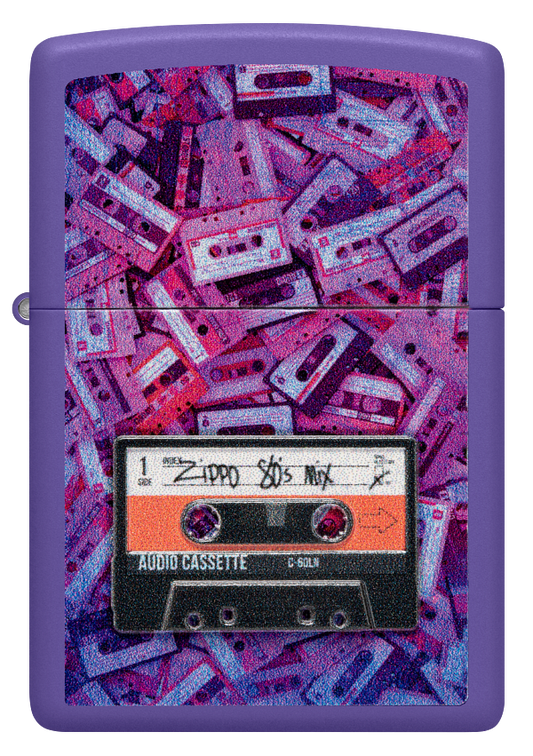 Zippo Retro Cassette Tape Textured Print Design, Purple Matte Lighter #48521