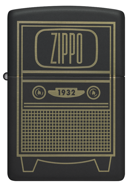 Zippo Vintage TV Design, Black Matte Laser Engraved Lighter #48619