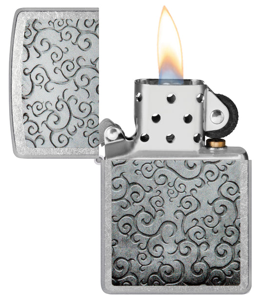 Zippo Iced Paisley Flower Lighter, Gray Dusk Finish, USA Windproof #29431