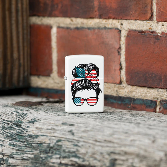 Zippo American Woman USA Flag Design, White Matte Lighter #46156