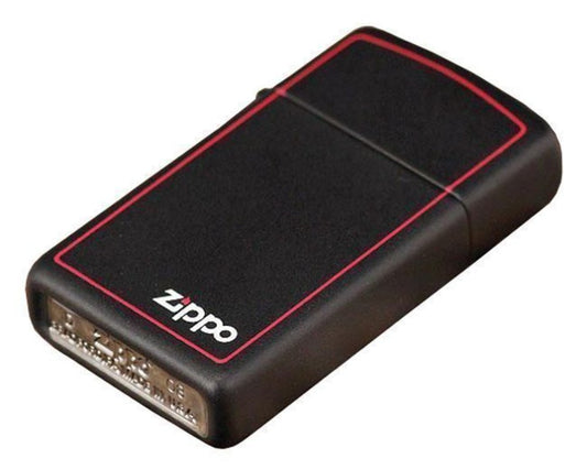 Zippo Red Border Lighter, Black Matte, w/ Zippo Logo, Slim, Windproof #1618ZB